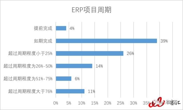 可以看到,虽然按时完成和提前完成只占了43%,但比去年也有了较大的提升,去年同期只有25%。并且随着越来越多的公司开始配备专业的ERP顾问进行部署的计划建议,计划按时完成将会越来越普遍。
